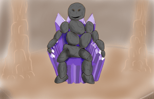 “Oh, do stand up. It is not often that I have the opportunity to converse with someone as solid as myself.” The voice came closer still, and what seemed to be a pile of rocks stepped into the light. It towered over the Human, and the boulder on the top of the pile had a semblance of a face. Two divots appeared to serve as eyes, and a crack could be taken for a mouth. It did not move when the voice spoke, but it moved through expressions. It currently smiled, much to the Human’s relief.